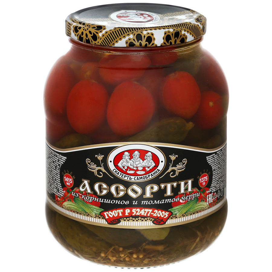 Ассорти Скатерть-Самобранка из корнишонов и томатов черри, 1375г